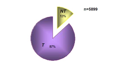 La figure 60 représente la répartition des patients traité et non traités durant ces cinq années.