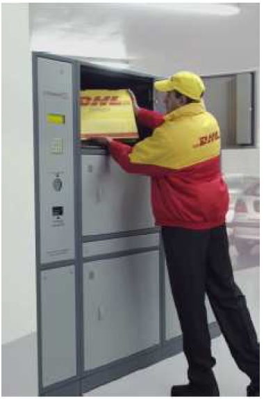 Planche 2. Un agent DHL chargeant une consigne automatique Consignity