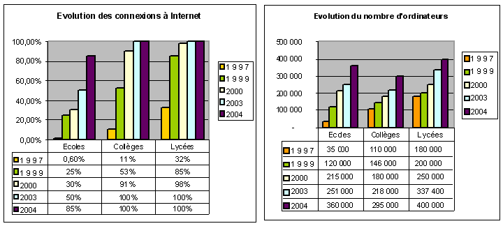 Figure 3 : Evolution du nombre d’ordinateur et de connexions Internet dans les établissements scolaires(6)