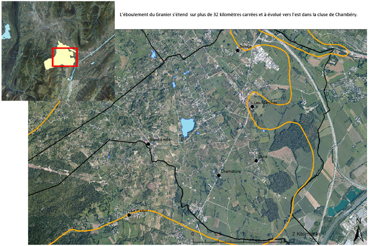 Figure 3 : Situation de l’éboulement du Granier sur les photographies aériennes (©IGN/Géoportail)