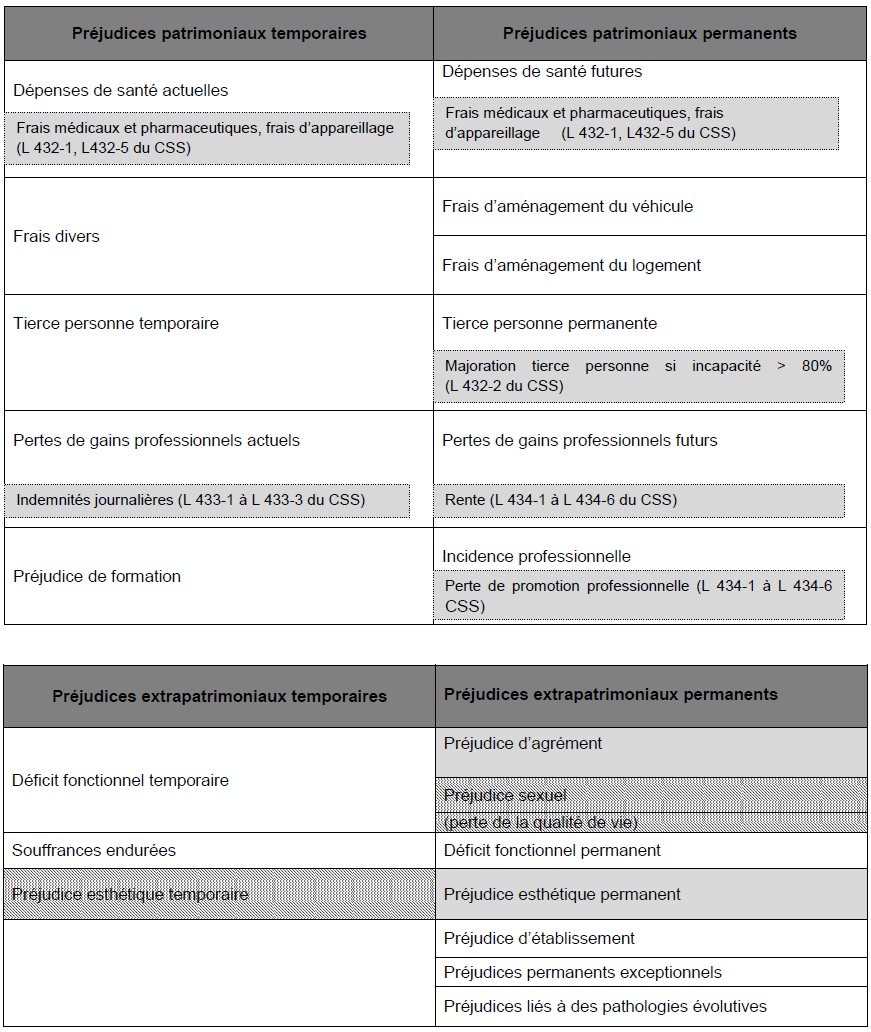 Intégration dans la nomenclature Dintilhac des prestations et indemnités serves aux victimes de faute