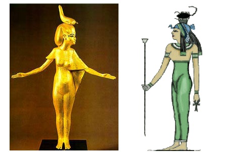 fig.39 : Selkis protégeant le coffre entièrement doré de la tombe de Toutankhamon (Egypte).