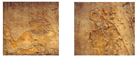 fig. 40: Une des déesses patronnes de la Nubie au front de laquelle se trouve un scorpion.