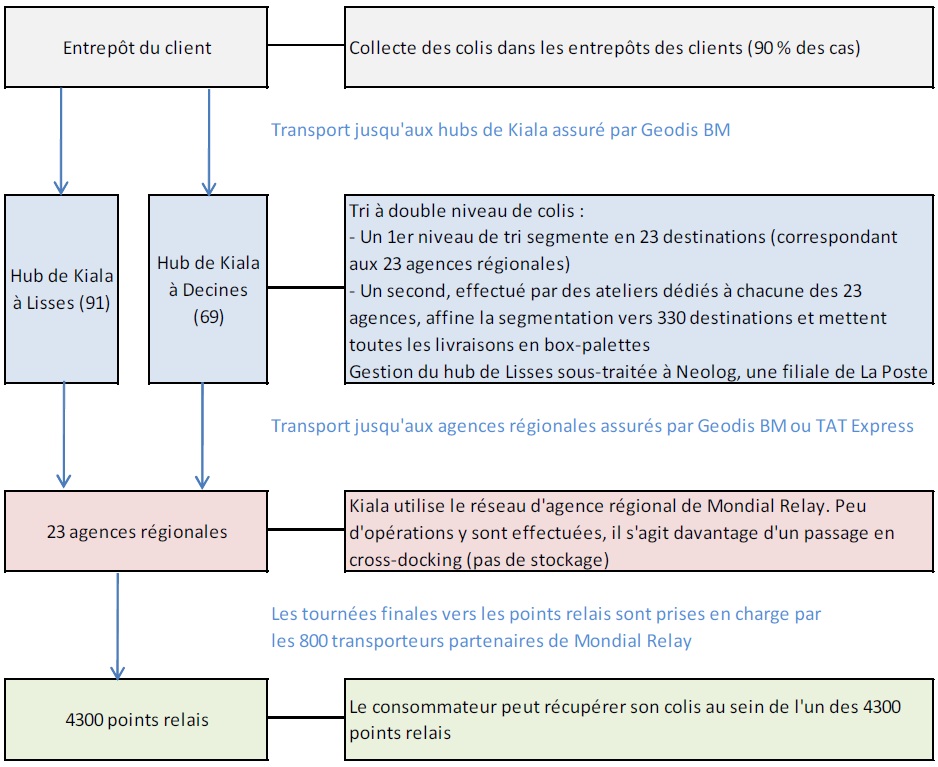 Figure 12. Les différents transporteurs dans le schéma de livraison des points relais de Kiala