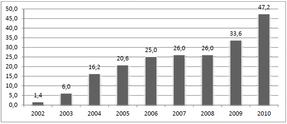 réalisé un chiffre d’affaires de 33,6 millions d’euros en 2009 et 47,2 millions en 2010,soit