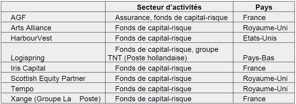 particulier des fonds d’investissements proches de La Poste française (Xange) et de La