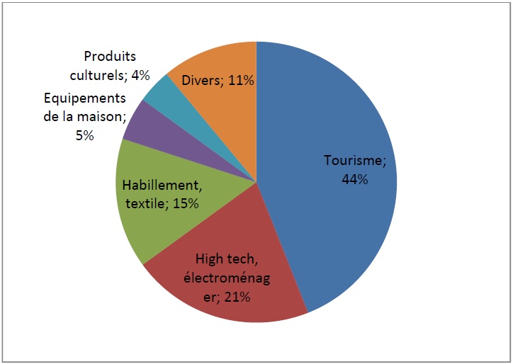 (high tech et électroménager) sont arrivés en deuxième position, avec un peu plus de 20%
