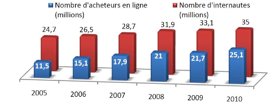 Figure 6. Evolution du nombre d’internautes et de cyberacheteurs entre 2005 et 2010