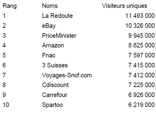 en ligne en France est La Redoute avec près de 11,5 millions de visiteurs uniques au 3e