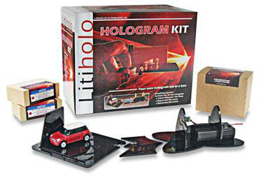 Litiholo is a subsidiary of the American company “Liti Holographics” has developed a new line of photosensitive holographic plates. These “flash movies” does not require chemical processing to reconstruct a hologram. Suitable for both techniques, the hologram can be refunded immediately after recording. However it requires a longer exposure time of about 15 minutes. Thus Litiholo chose to democratize holography with his kit while hand and easy to use for a reasonable price of 99$.