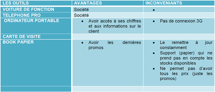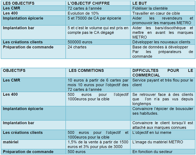A l’entrepôt, le commercial doit rendre des comptes au directeur. Il est évalué et suivi par son chef de secteur. Les objectifs changent d’une année à l’autre. Par exemple cette année, il a été décidé que 400 clients seraient attribués à chaque commerciaux.