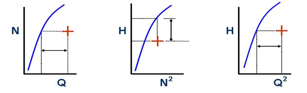 Q : Débit, N : Vitesse de rotation, H : Hauteur statique