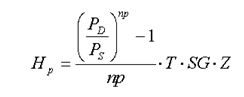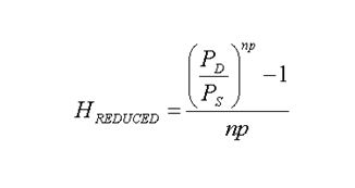 L’équation de la hauteur réduite en fonction de débit réduit doit être utilisée pour simplifier les équations, car la température, la densité et la compressibilité s’annulent à la fois dans les équations de hauteur et de débit. La hauteur réduite est seulement une fonction du taux de compression et de débit, calculé comme suit :