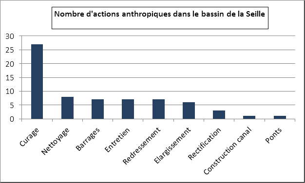 Figure N°10 : Nombre d’actions anthropiques sur la Seille XIIIe siècle – 2010