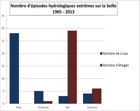– Les crues des basses eaux en été : résultant d’épisodes pluvieux très courts et intenses sur le bassin versant imperméable, elles ne durent qu’entre 15 et 24 jours.