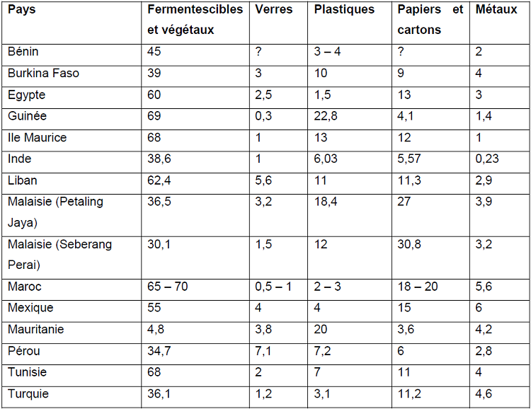 1.1.2.2. Composition de déchets ménagers dans les pays en développement