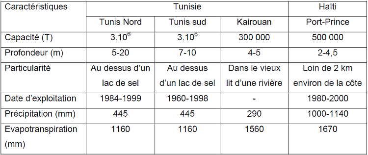 Les caractéristiques de quelques décharges en Tunisie et en Haïti sont reprises dans le tableau suivant.