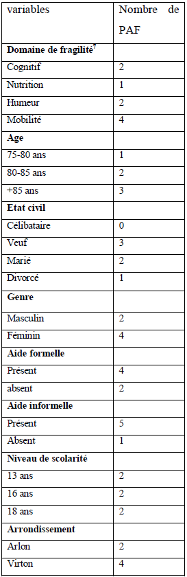L’échantillon des PAF est dit « sélectif » car il a été sélectionné suivant des critères prédéfinis (Ajoulat, 2009) tels que : âge, genre, présence d’aide formelle et informelle, domaines de fragilité, état civil, niveau de scolarité (cf. annexe 4). La sélection de l’échantillon vise à rencontrer un maximum de variabilité dans ces critères.