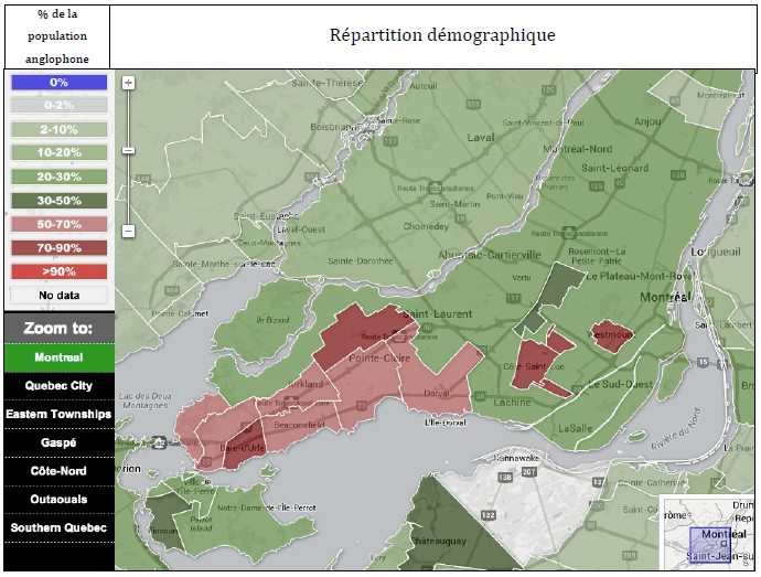 27 Boychuk Jason, Where are quebec’s Anglos? Map of population distribution from 2011 Census, CBC, [En ligne] http://www.cbc.ca/montreal/features/livingenglish/anglophone-census-map/ (consulté le 11/06/2013)