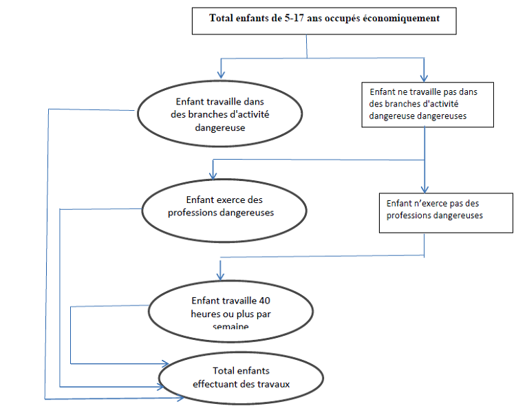 La variable dépendante dans le cadre de l’étude est l’exercice d’une activité dangereuse. Nous pouvons cibler un enfant se trouvant dans une telle situation s’il répond à l’algorithme ci-après :