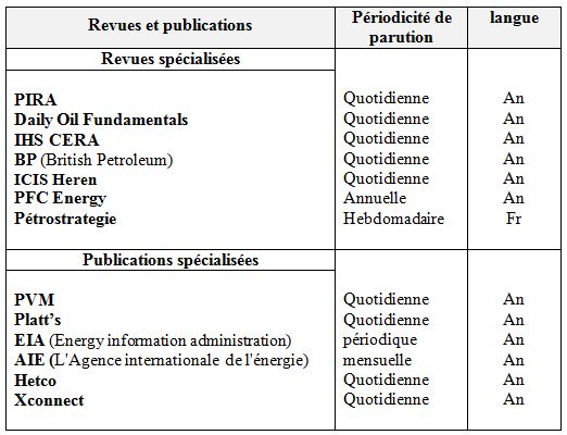 – Note hebdomadaire des marchés pétroliers et gaziers de l’activité commercialisation ;