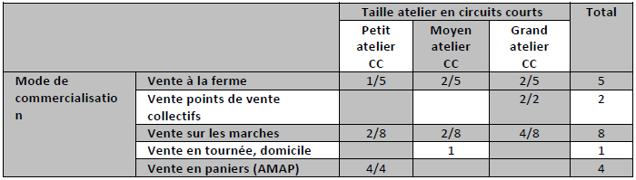 Il apparait que la participation dans certains modes de commercialisation de la part des agriculteurs dépend de la taille de leur atelier en circuits courts. Par exemple, s’investir dans un projet ou un contrat avec une AMAP pour la livraison de paniers, ne représente pas le même type d’investissement que le montage d’un magasin associatif qui nécessite, non seulement l’accès au capital économique, mais aussi une transformation organisationnelle dans chaque exploitation.