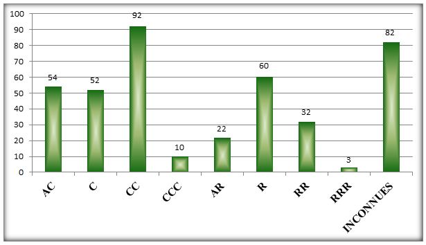 La figure 5.3 montre la répartition des espèces selon le statut d’abondance.