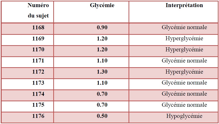 - Les résultats des sujets sont classés dans le tableau ci-dessous :1.4. RESULTATS