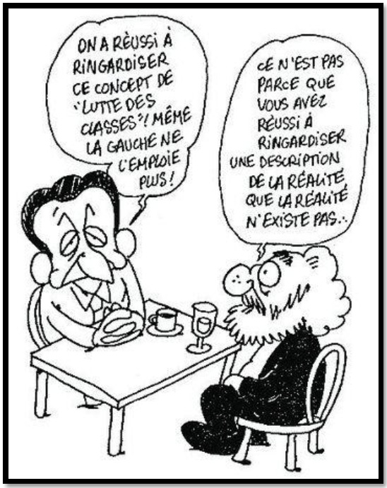 Par là-même, les élites « bourgeoises » sociales et politiques, détenant les médias et traditionnellement opposées aux « prolétaires » auraient, sous couvert de soi-disant « bonnes intentions » instauré un discours médiatique peu favorable à la classe « prolétarienne » contre laquelle ils « sont en lutte ».