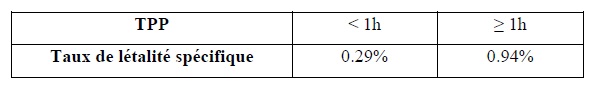 Tableau XI : Taux de létalité selon le TPP (< ou ≥ 1h)