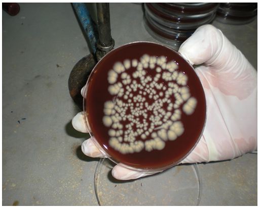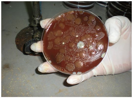 Figure n°27 : Contamination d’une primo culture de Helicobacter pylori (Photo prise au laboratoire de bactériologie de l’EPH Bologhine).