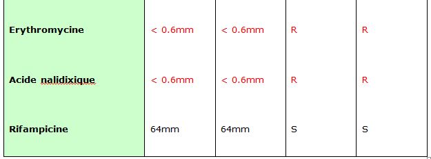 On note également une résistance des 2 souches à l’acide nalidixique, celle-ci étant un caractère d’identification de Helicobacter pylori.