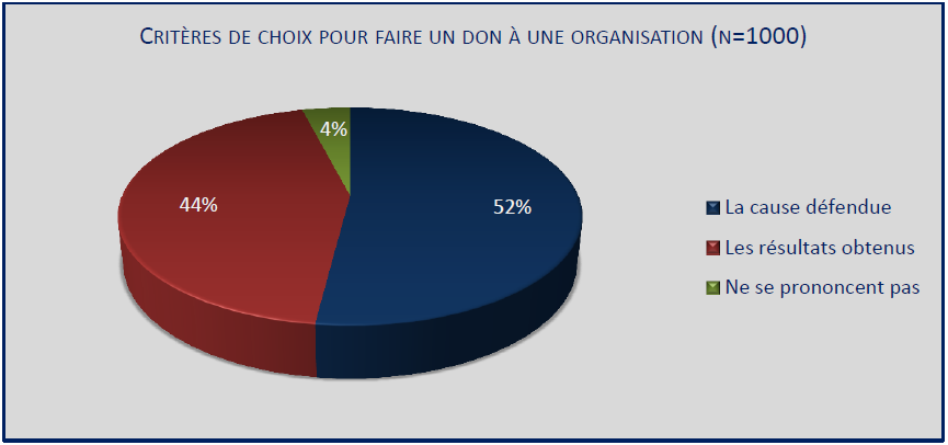 La population semble partagée quant à ces deux critères de choix ; ils ont tous deux une importance relative très proche. Les organisations doivent donc aussi bien communiquer sur les actions qu’elles s’apprêtent à mener que sur les résultats atteints précédemment.
