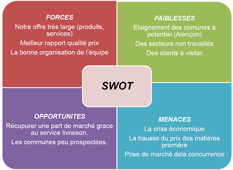 Le but de cette analyse est de définir les forces, les faiblesses, les menaces et les opportunités de l’entrepôt et du marché. C’est un véritable outil pour déterminer les axes de progrès et appréhender les difficultés. Ce diagnostic est à compléter avec celui du marketing Mix.