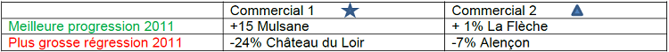 Ce tableau ce lit avec la carte, il représente les villes qui ont connu les meilleures progressions et les plus grosses régressions par Commerciaux.