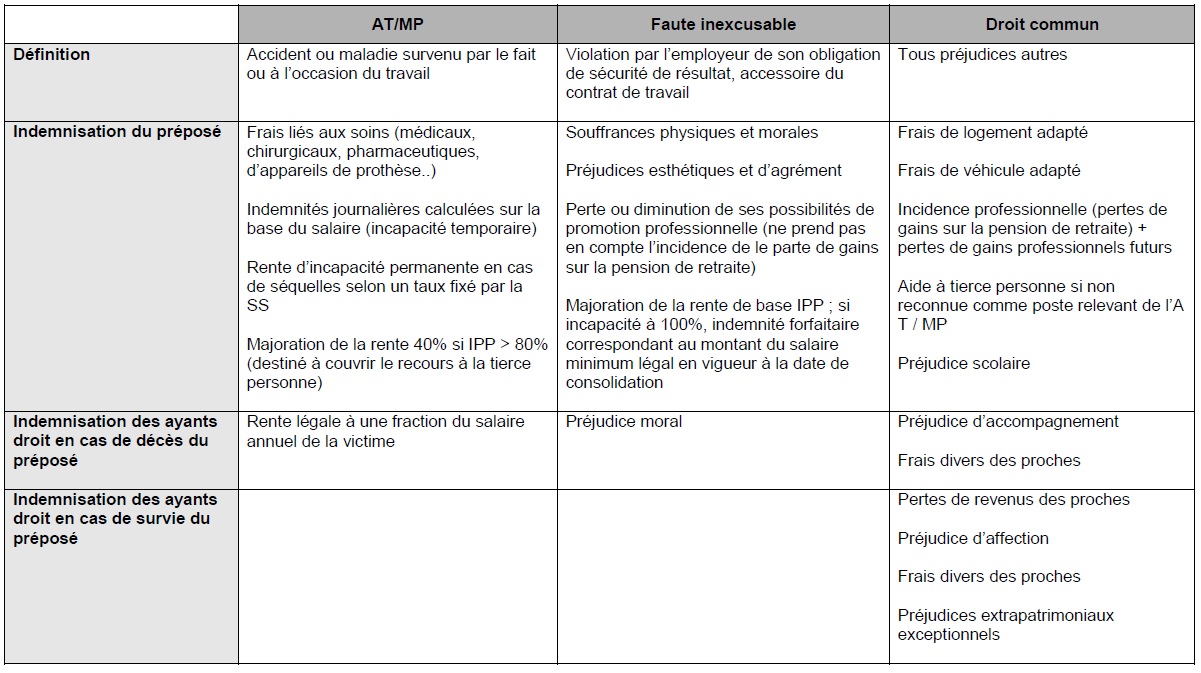 l’indemnisation offerte aux victimes d’AT/MP sans faute inexcusable, d’AT/MP avec faute