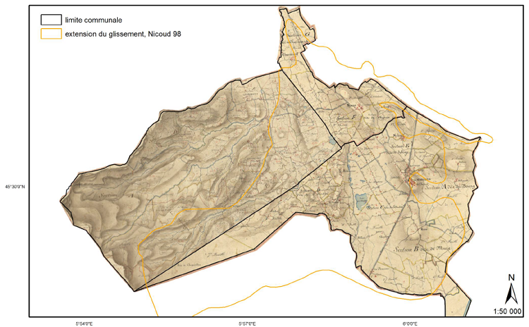 Les tables d’assemblages du premier cadastre français géoréférencées sur l’extension de l’éboulement du mont Granier