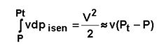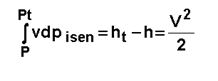 Où h est l’enthalpie spécifique du gaz et V est sa vitesse. Similaire à l’enthalpie statique, on peut aussi définir la température statique et la pression statique. La pression statique Pt est définie comme la pression développée quand le gaz est décéléré de façon réversible et adiabatique de vitesse V à vitesse nulle. Puis, à partir du bilan énergétique,