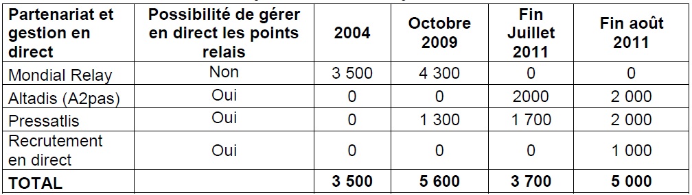 théoriquement fin août 2011. Le recrutement de points relais est un processus maîtrisé par