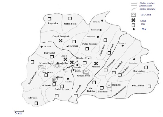 (carte synthétique : Maroc des régions 1997, carte sanitaire de la province de Khouribga….)