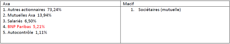 Tableau 25 Actionnaires principaux des assurances détenant les sociétés e gestion (source Boursorama)