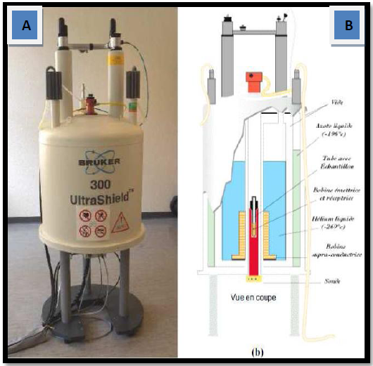 Figure 10 : Appareil (A) et Schéma de RMN (B). (Navarrete Fuentes, 2011).
