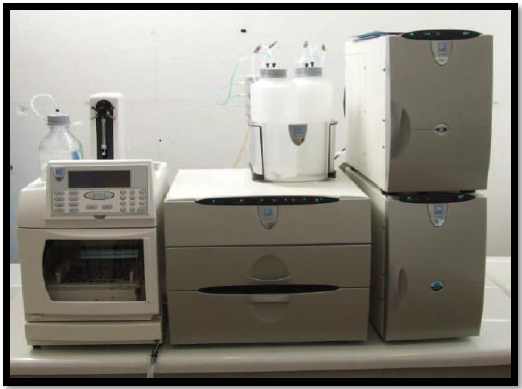 Une pompe isocratique qui assure le débit et la pression. Des passeurs d’échantillons qui garantissent des injections fiables, précises et exactes, les échantillons sont dissous dans 20mg/ml de solvant et le débit a été fixé à 1ml/min). Un four à colonne formé d’une colonne de garde et deux colonnes P4000 et P3000 (Polysep-GFC-P). Pendant l’analyse la température du four à colonne était fixé à 40 °C. Et enfin, des détecteurs qui sont disponibles pour la détection d’une large gamme de composés, en UV 280_nm; et en indice de réfraction (IOTA2).