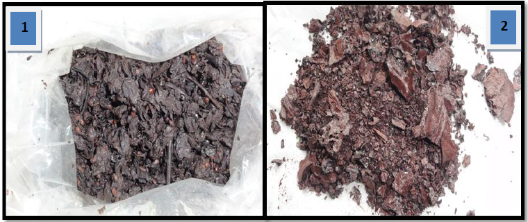 Figure 4 : Marcs de raisin frais et après lyophilisation.