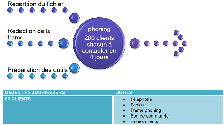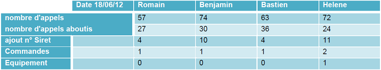Tous les soirs, nous reportions sur des tableaux de suivi le nombre de clients contactés, les modifications apportées et le nombre de commandes.