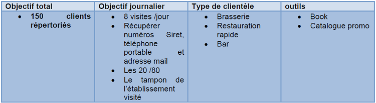 Tous les jours, nous (les deux stagiaires et moi) devions appeler au minimum 120 clients. Cet objectif nous a été donné par l’un des commerciaux. Les stagiaires étaient sous ma responsabilité. Je devais contrôler leurs résultats et m’assurer qu’ils atteignent leurs objectifs. J’ai donc eu deux rôles distincts pour cette mission.