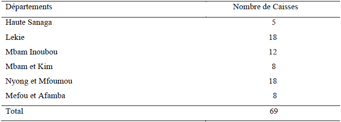 Tableau 1 : Répartition des caisses du réseau A3C dans la Région de l’étude durant l’année 2010
