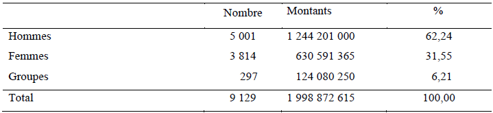 Il convient de préciser que ces crédits sont accordés pour les activités agricoles (34%), commerciales (29%) ; sociales (18%) et bien d’autres (19%) (A3C, 2011).