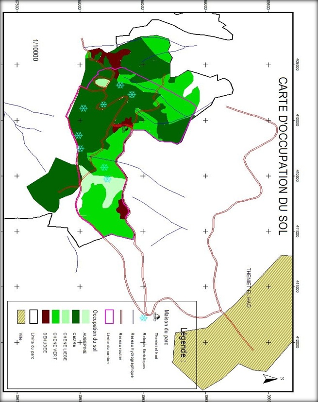 Après avoir consulté l’étude menée par les Bulgare en 1984, nous avons pu élaborer une carte d’occupation du sol du canton Pépinière du Parc National de T.E.H présentée dans la figure 5.6 ainsi que la carte de parcellement du canton Pépinière (figure 5.4).