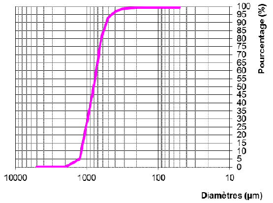 Le couple de données granulométriques, diamètre et poids, obtenu par tamisage, est porté sur un papier graphique semi-logarithmique (Figure 5) :